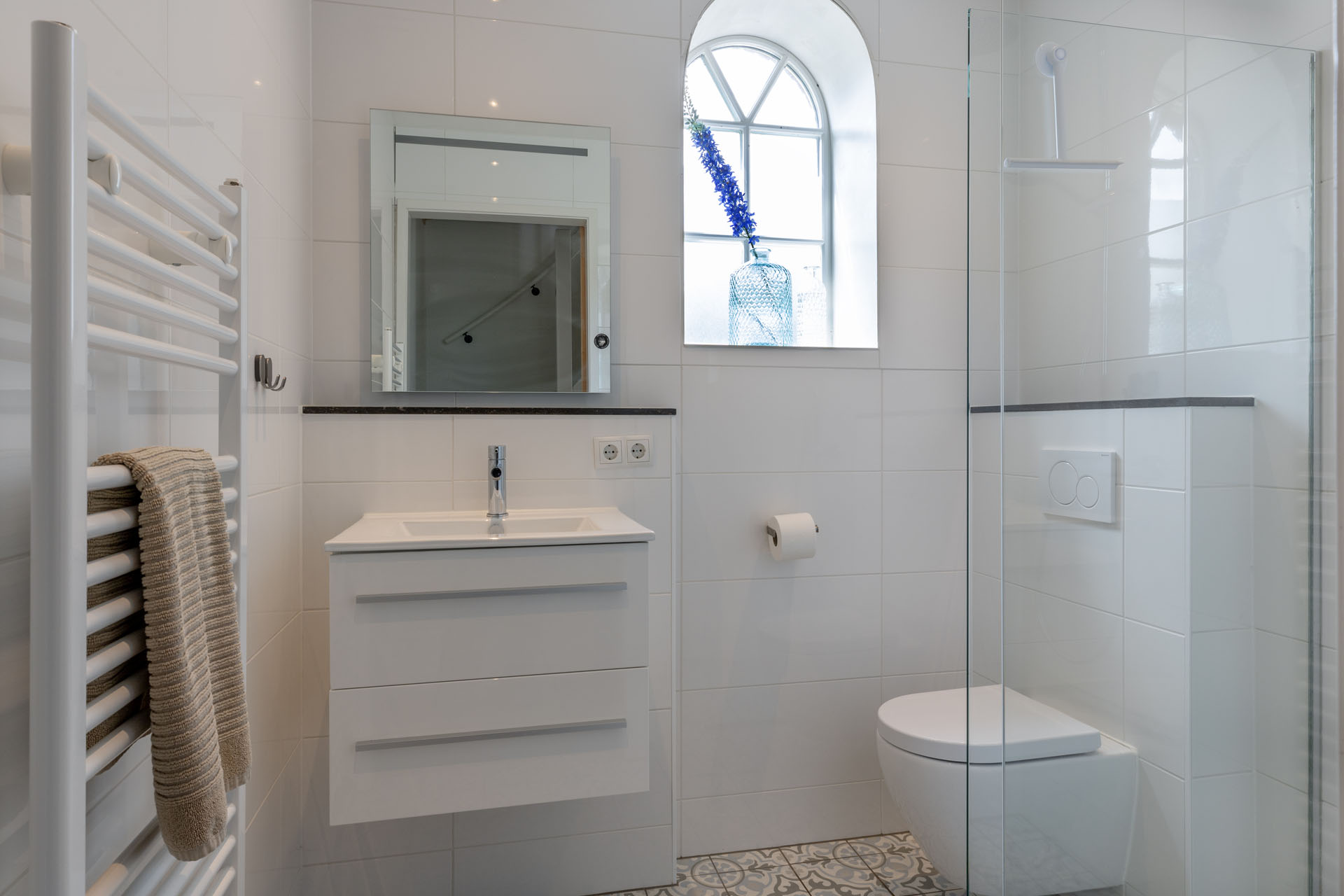 • De badkamer is beneden met toilet, regendouche, wastafel en föhn.